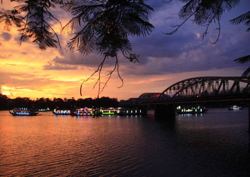 7. Thien Mu Pagoda Then get on the boat for a sight -seeing along the Perfume River to see fishing village and sampan on the way back. Do not miss the Sunset on the Perfume River!