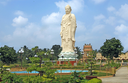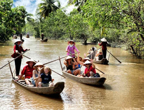 On arrived at My Tho, visit Vinh Trang pagoda, take a leisurely boat ride along the river, view the stilt houses, fruit plantations and fishing villages along the river bank. Proceed to Tortoise islet, have lunch in the orchard garden. Then aboat ride to An Khanh – a less touristy attraction in Ben Tre, enjoy cruising on a hand-rowed sampan under the shadow of the water coconut trees along natural canals, then enjoy seasonal fruit & honey tea to the sound of "Southern Vietnamese folk music", performed by locals.